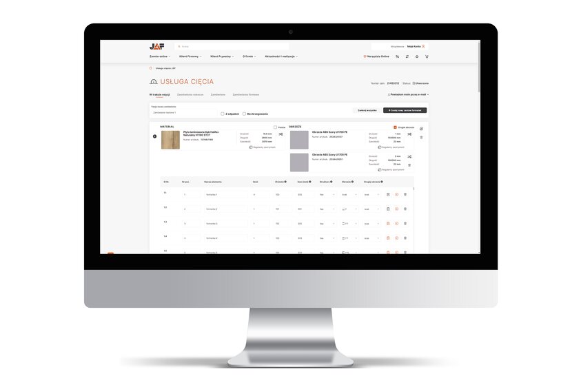 WebCut to innowacyjna usługa cięcia i okleinowania online. To również bezpośredni dostęp do całej bazy produktów JAF Polska. Mnogość materiałów oraz opcji obróbki sprawia, że jest to zdalna linia do produkcji mebli na wymiar. Dostępna 24h z dowolnego miejsca na świecie.