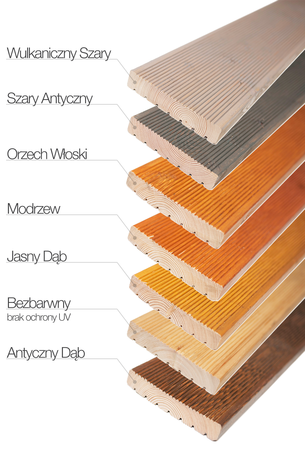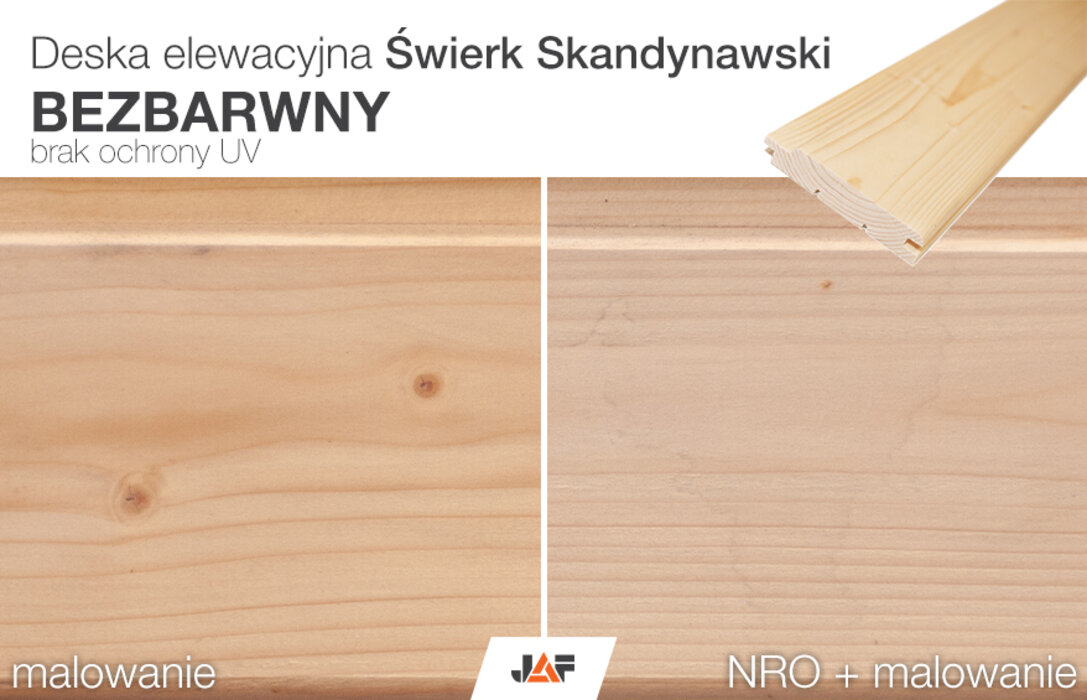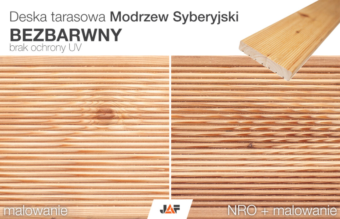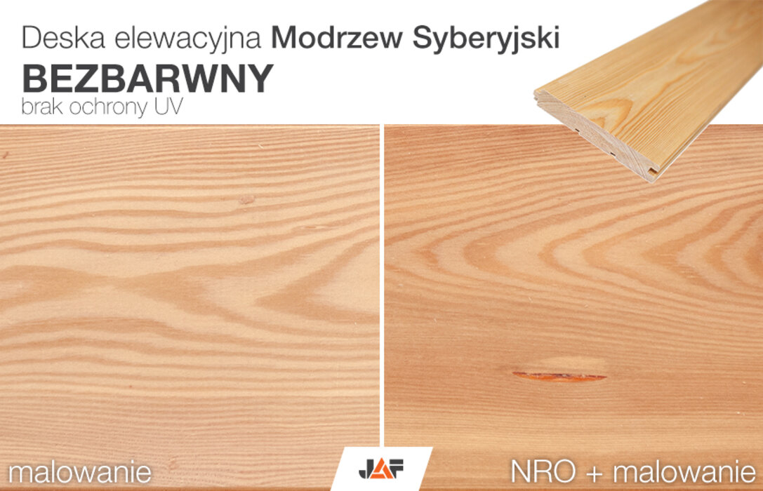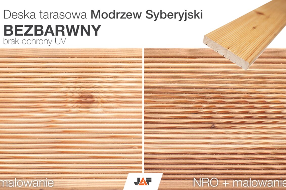 Pamiętaj, że impregnacja wpływa na kolor drewna (czyniąc go lekko ciemniejszym), natomiast bezbarwna lazura nie chroni przed promieniami UV. Impregnat oraz lazura nie zawierają fungicydów (przeciwgrzybiczne) oraz insektycydów (przeciw szkodnikom).