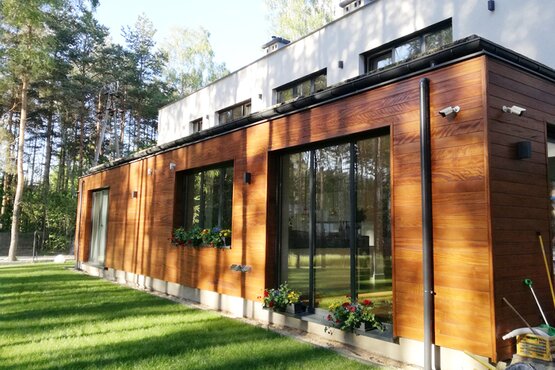 Cedr to gatunek drewna, który pierwotnie z dumą porastał zbocza Himalajów. Odznacza się naturalnie wysoką odpornością na działanie czynników biologicznych oraz wysoką stabilnością wymiarową. Elewacja z drewna cedrowego poprawia też odczuwalnie właściwości izolacyjne budynku. Kolor poszczególnych desek przechodzi od beżu do ciemnego brązu. Drewno efektowne i wytrzymałe. Przyjazne w barwieniu, jak i obróbce.
