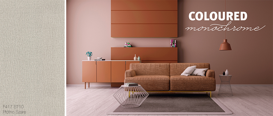 Gama kolorów z tej samej palety, za to o różnych stopniach intensywności - w tym bardzo modne odcienie ziemiste. Oprócz barw cielistych, szarobrązowych i szaroniebieskich, świat „ColouredMonochrome” ma nam do zaoferowania reprodukcje drewna oraz tekstyliów. Nowość w trendzie to dekor F417 ST10 Płótno Szare, harmonijnie współgrający z ciepłymi barwami oraz dekorami drewnopodobnymi. Ogrzej się w blasku swoich ukochanych barw.