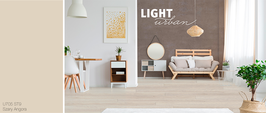 Kwintesencja wnętrz w stylu skandynawskim: harmonijnych i nieco minimalistycznych. To również biel optycznie powiększająca pomieszczenia. Wyważone połączenie reprodukcji materiałów drewnianych, betonowych i metalowych. Do tego gama stonowanych szarości. Siatka 9-grid wprowadza do gry nowy dekor U705 ST9 Szary Angora - z domieszką zmiękczającej czerwieni. Zadbaj o przytulny, miejski styl w jasnym wydaniu.