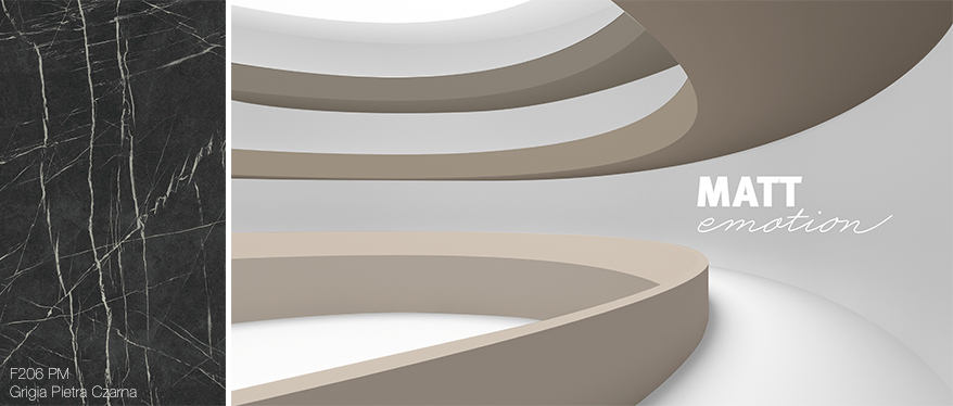 Na koniec zostawiliśmy subtelne wrażenia dotykowe oraz luksusowy wygląd marmuru. Charakteryzuje się nimi nowy dekor F206 PM Grigia Pietra Czarna. Białe żyły doskonale współgrają z czarnymi motywami. Możliwe jest również tworzenie intensywnych akcentów kolorystycznych np. przy użyciu odcieni czerwonego. Dzięki powierzchni PM Perfect Sense Matt nowy dekor zyskuje elegancki, kamienny charakter. Format XL z niewielką liczbą powtórzeń sprawia, że wygląda bardzo autentycznie nawet na dużych powierzchniach.