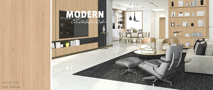 Kolekcję otwiera świat drewna. Drewnopodobne dekory możemy łączyć z nowoczesnymi materiałami np. tworząc wnętrza w stylu nowojorskim. Czekają na nas dąb (H3157 ST9 Dąb Vicenza), klon oraz wiśnia, które urzekają naturalnie wyglądającym usłojeniem. To również biały dekor W1000 w nowej eleganckiej odsłonie - powierzchni ST19 Deepskin Excellent. Dyskretna gra kolorów oraz stonowanych szarości pozwala uzyskać ponadczasowe efekty.
