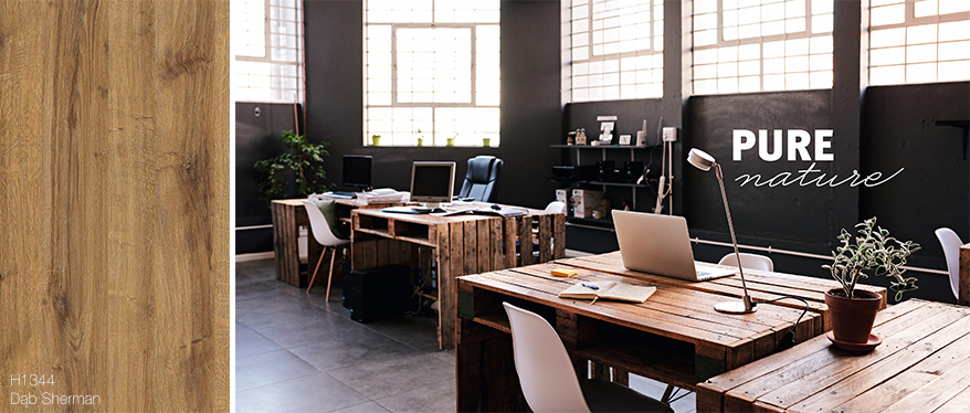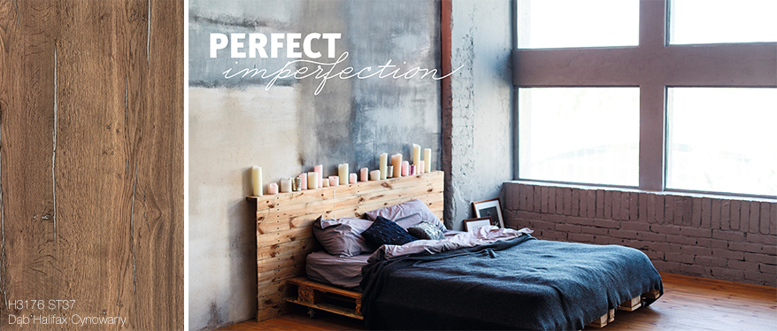 Świat wnętrz z duszą i naturalnym charakterem - pełnym klimatycznych pęknięć, odłamków i stylowego rękodzieła. Wpisuje się w trend eko, jak i styl loftowy. Do obu z nich idealnie sprawdzi się dekor H3176 ST37 Dąb Halifax Cynowany, oferujący nowe możliwości tworzenia. Format XL ogranicza powtarzalność wzoru, a struktura ST36 Feelwood Rift wzmacnia wrażenia dotykowe. Teraz dodajemy dekory metaliczne i industrialne wnętrze gotowe!