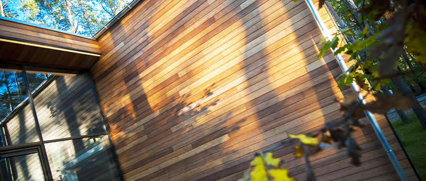 Na elewację, do budowy łodzi i nie tylko. Estetyczne, wytrzymałe, uniwersalne. Łososiowo-różowa barwa oraz świetne parametry sprawiają, że w Europie od kilkudziesięciu lat cieszy się niesłabnącym powodzeniem. Przyjazne w obróbce, barwieniu i łączeniu. W porównaniu do wcześniej omawianych gatunków jest mniej gęste, a co za tym idzie, odczuwalnie lżejsze. W wielu przypadkach mniejsza waga bywa zaletą. Zwłaszcza, że drewno okoume nie wykazuje tendencji do pęknięć lub odkształceń. Chroni budynek przed utratą ciepła oraz izoluje akustycznie, a przy tym wszystkim - po prostu świetnie wygląda!