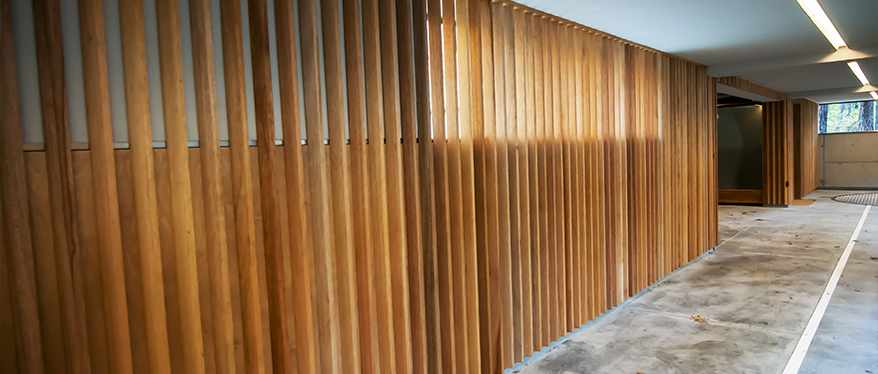 Nowoczesne budownictwo to nie tylko bryła, ale i nowoczesne materiały. Zazwyczaj pierwsze skrzypce grają surowy beton i kamień, chłodne szkło, a nawet rdzewiejąca stal. Ciepłym akcentem, który harmonijnie dopełnia powyższe surowce, jest oczywiście drewno. Fasada budynku to idealne miejsce na łączenie wyrafinowanych materiałów. Te same rozwiązania możemy zastosować również w bliskim otoczeniu domu, czyli tzw. obiektach małej architektury - czyniąc je spójnym rozwinięciem naszej wizji. Ażurowy garaż, wiata śmietnikowa i ogrodowa pergola to tylko niektóre z miejsc, gdzie elewacja żaluzjowa prezentuje się znakomicie. Jednak wygląd to nie wszystko. Liczy się możliwie bezobsługowy, niski stopień wymagań konserwacyjnych. Na szczęście pod tym względem natura nie ma się czego wstydzić. Zwłaszcza przy wsparciu nowoczesnych metod obróbki i impregnacji drewna.