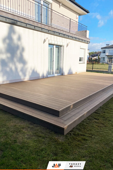 Nasza deska kompozytowa Gardin Natur w kolorze Złoty Teak, pojawiła się niedawno na jednym z osiedli domów jednorodzinnych w Łazach pod Warszawą.
