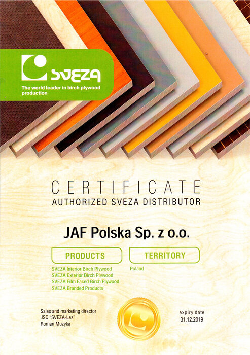 Mamy przyjemność poinformować, o certyfikacie dystrybutorskim jaki właśnie otrzymaliśmy od firmy SVEZA.
