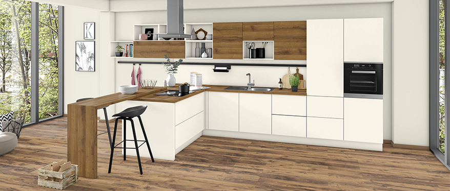 Coraz popularniejszym rozwiązaniem jest tworzenie strefy dziennej z połączenia salonu i kuchni. W mniejszych mieszkaniach pozwala to wizualnie powiększyć przestrzeń, a w większych umożliwia wspólne spędzanie czasu. Jednym z głównych elementów definiujących wystrój jest więc zabudowa kuchenna. Dlatego wybierając jej styl, zwracamy uwagę na trwałość użytych materiałów, jak również na ich ogólną estetykę.