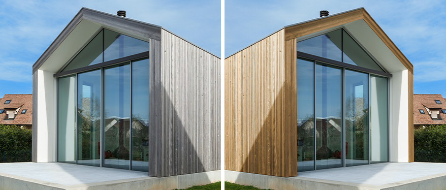 Niezależnie od wybranego gatunku — drewno wystawione na bezpośrednie działanie promieni UV stopniowo zmienia swój kolor, a dokładniej szarzeje. Nic w tym złego, a nawet wiele dobrego. Przede wszystkim jest to proces naturalny, który chroni drewno, a także wydłuża jego trwałość. Srebrzysta patyna dodaje szlachetnego uroku i wprowadza niepowtarzalny klimat. Nic dziwnego, że jest uwielbiana i pożądana przez architektów na całym świecie.