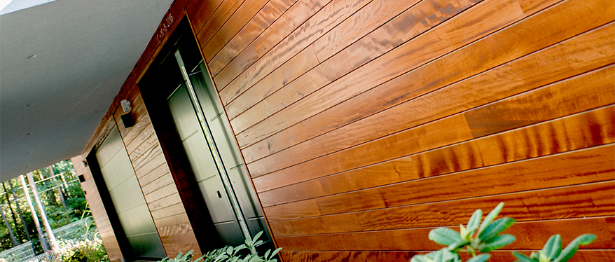 Oto gatunek, który nie jest ani egzotyczny, ani termowamy — jest genialny! Piękne i pachnące drewno, które można polecić w ciemno. Modrzew pochodzi z syberyjskiej tajgi, więc warunki pogodowe w Polsce to dla niego jak wakacje. Dzięki wysokiej zawartości żywicy jest od urodzenia odporny na rozwój grzybów i pleśni. Niska chłonność wody sprawia, że można całkowicie zrezygnować z jego impregnacji. Dla zachowania koloru polecamy olejowanie, ale o tym zaraz. Modrzew Syberyjski to sprawdzony sposób na wytrzymałą elewację, w której zakochasz się od pierwszego wejrzenia.