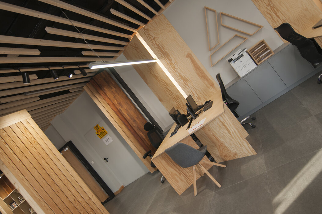 - biurka wykonane ze sklejki brzozowej i sosnowej,