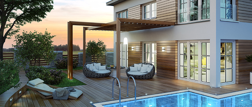 Chociaż spotykamy ogrody zimowe, czyli przeszklone i ogrzewane pawilony, najprzyjemniej siedzi się na świeżym powietrzu. Drewniany taras, altana oraz pergola to popularne sposoby przedłużenia powierzchni domu od zewnątrz. Na ich korzyść wpływa prostota budowy, dostępność i łatwość obróbki materiałów, jak i możliwość swobodnego grillowania wewnątrz ażurowej konstrukcji. Nie trzeba się też obawiać zbitej szyby nieczysto zagraną piłką. Polecamy za to pochylić się nad doborem drewna i jego zabezpieczeniem.