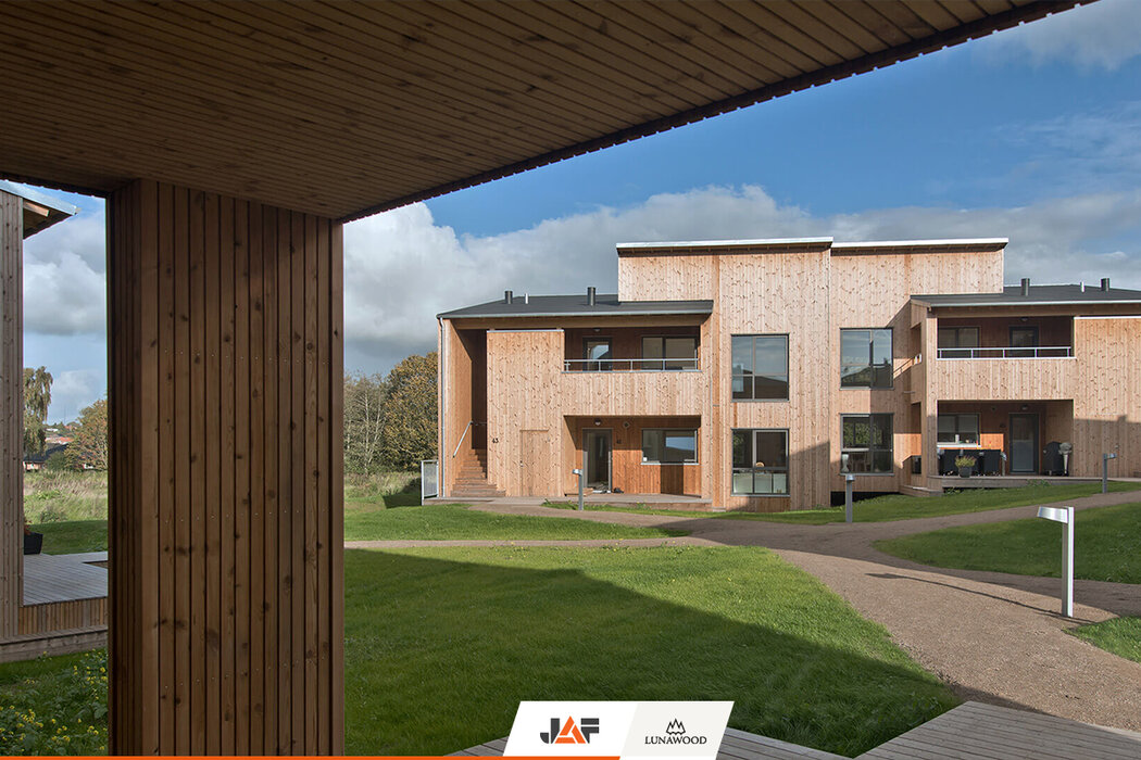 Termososna nie przestaje nas pozytywnie zaskakiwać. Te domy, które kiedyś prawie doszczętnie spłonęły, zostały wskrzeszone i przywrócone do życia dzięki elewacji z termososny od Lunawood. Mieszkańcy Fyrværkeriparken (parku fajerwerków) cieszą się teraz zdrowszą i trwalszą transformacją tej prywatnej rezydencji.