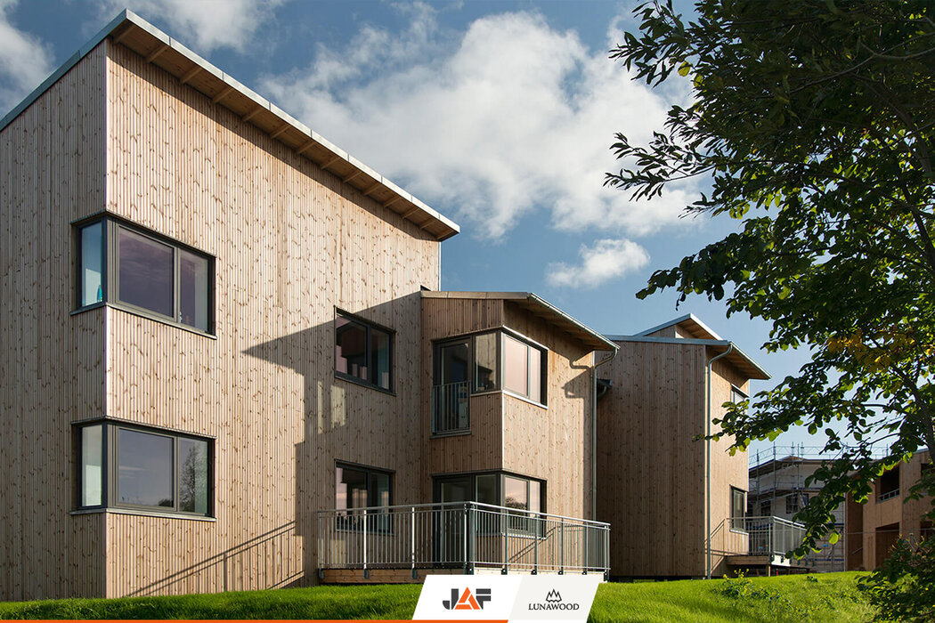 Te domy, które kiedyś prawie doszczętnie spłonęły, zostały wskrzeszone i przywrócone do życia dzięki elewacji z termososny od Lunawood.