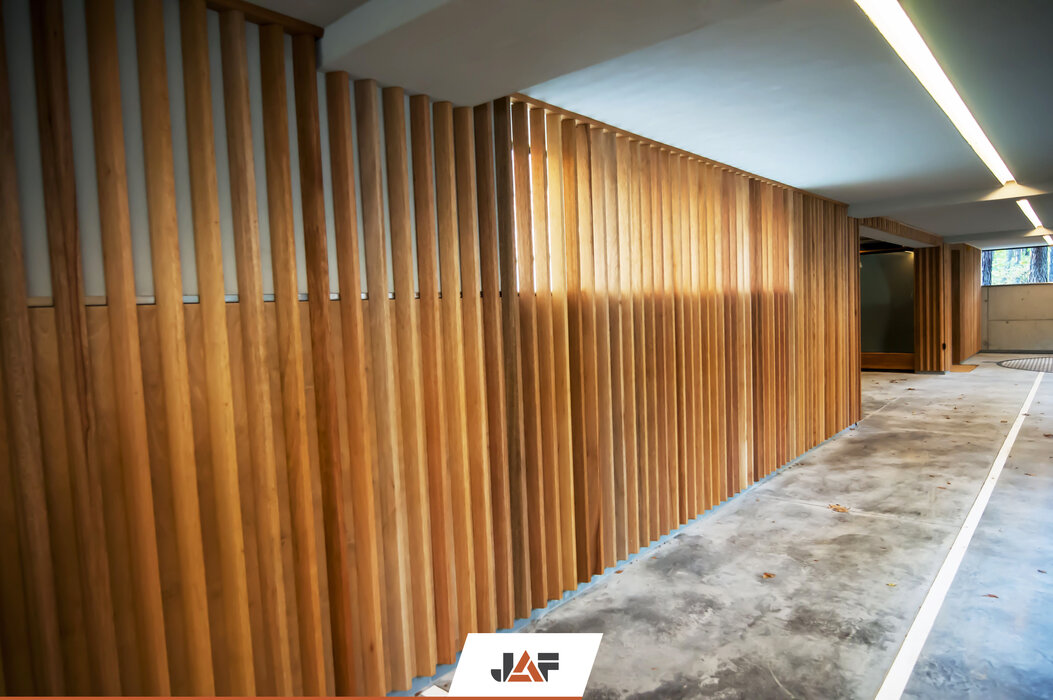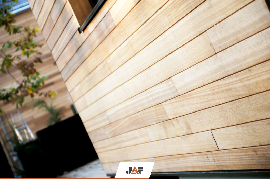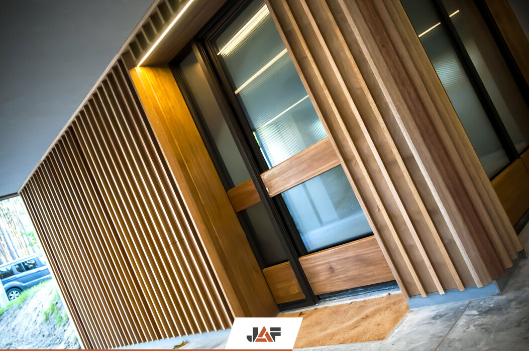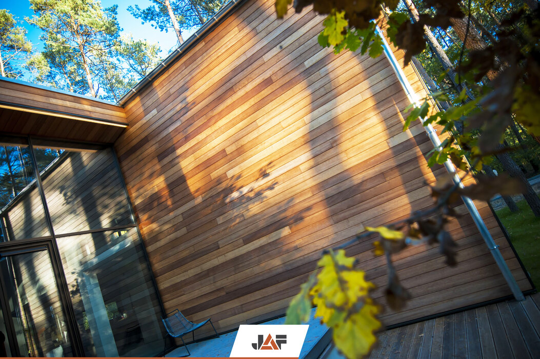 Domy otoczone są zielenią drzew, która idealnie współgra z drewnianymi elewacjami budynków