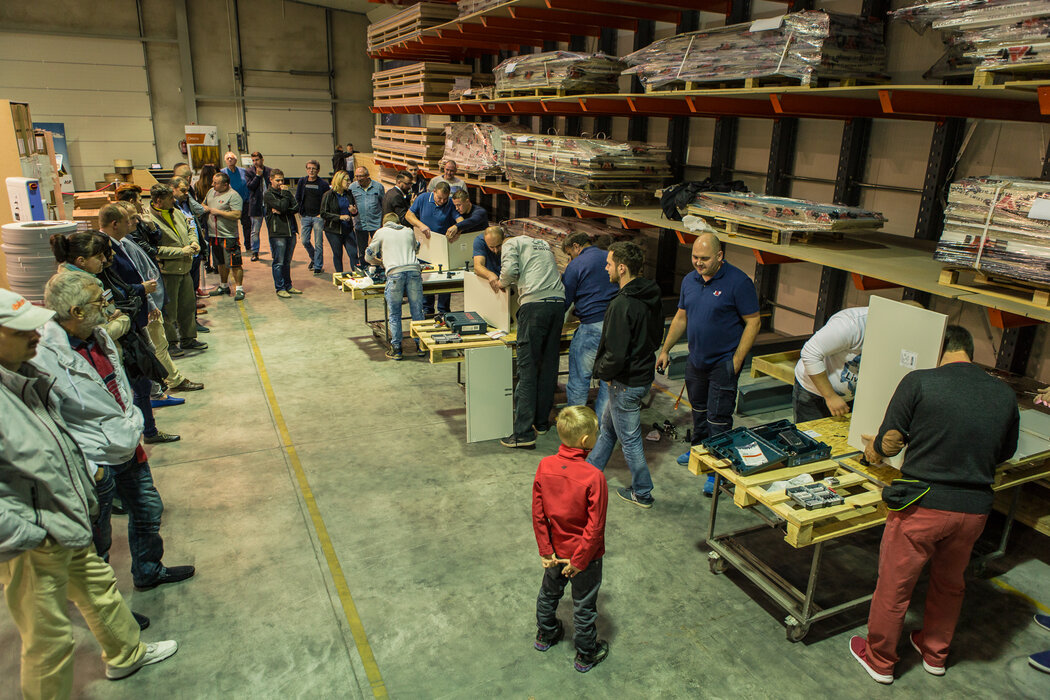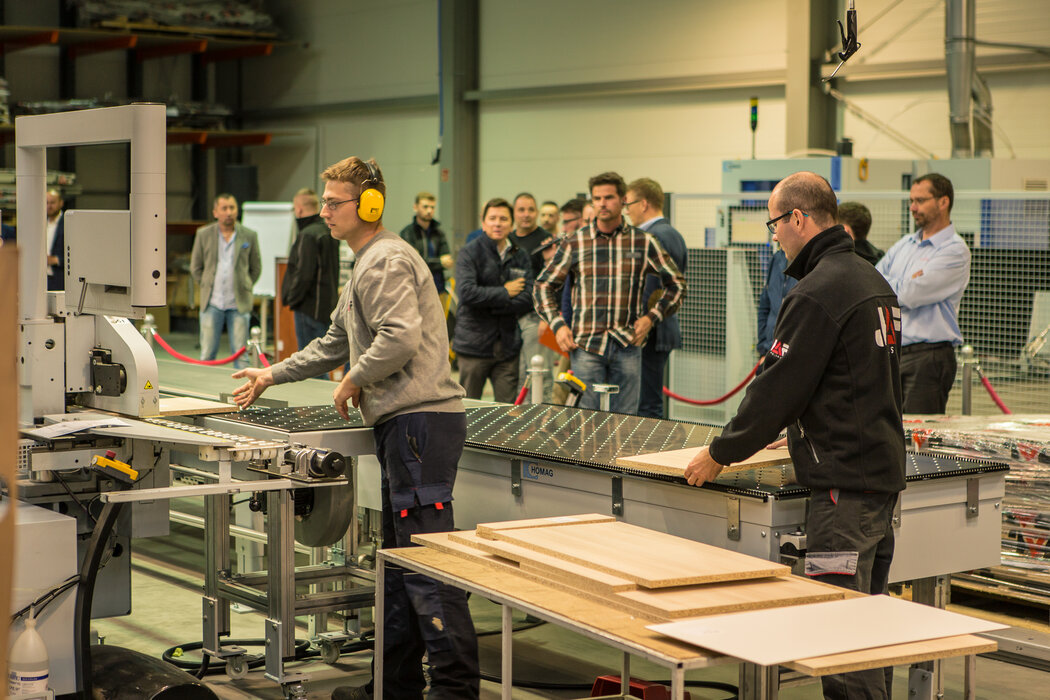 Podczas wydarzenia zaprezentowaliśmy nowoczesny park maszynowy z takimi urządzeniami jak Okleiniarka Homag KAL 370 profiLine, Piła do przycinania płyt Homag HPP 300, Pionowe centrum obróbcze CNC Homag BHX 200 oraz zautomatyzowany magazyn powierzchniowy Homag TLF 411. Mieliśmy przyjemność zaprezentować pełny proces produkcyjny, który został zwieńczony nietypowym konkursem składania szafek na czas! Do wygrania były nagrody od firmy JAF jak i naszych Partnerów handlowych.