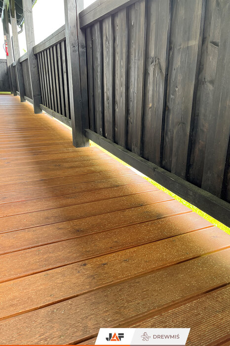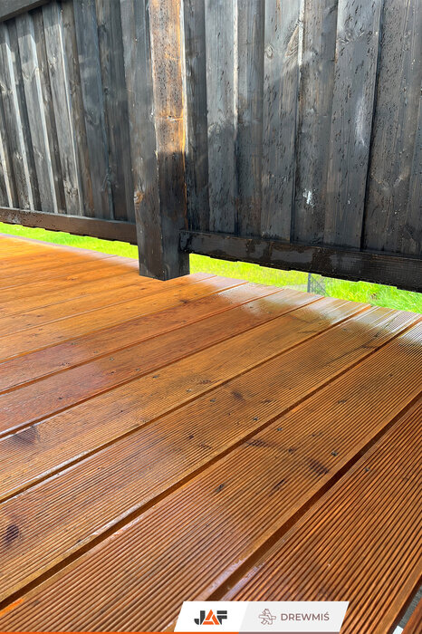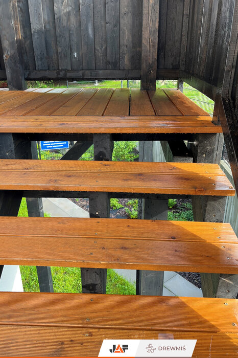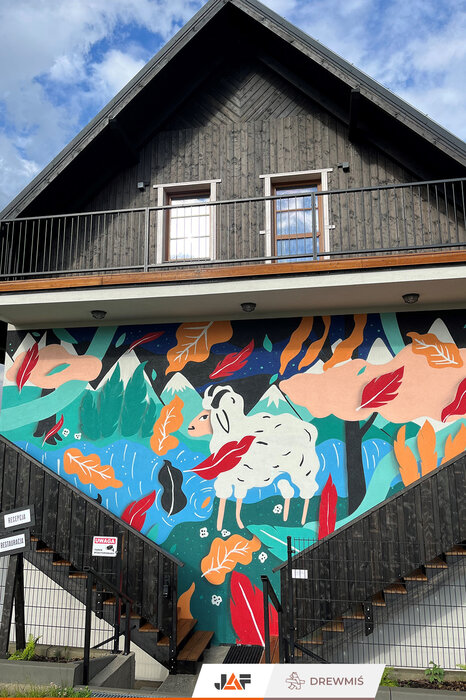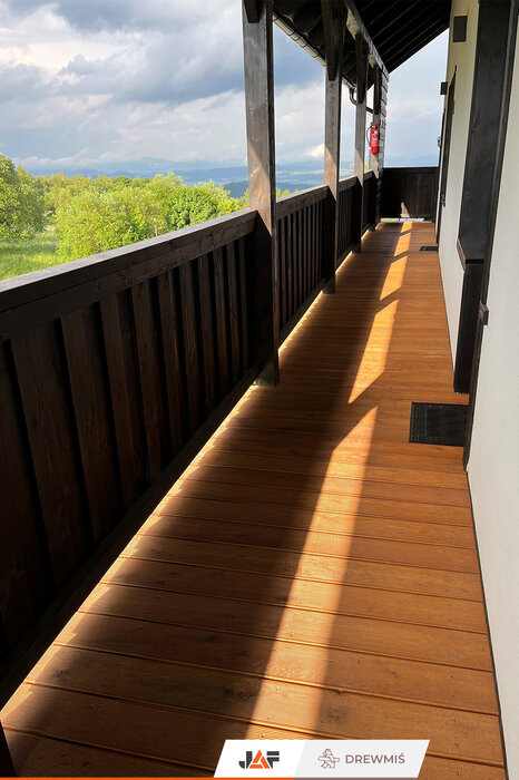 Dlatego JAF Polska — za pośrednictwem naszego zaufanego partnera, firmy Drewmiś Wrocław — miał okazję dostarczyć tam szeroką gamę szlachetnego surowca. Do budowy podłużnego tarasu o łącznej płaszczyźnie 96 m² posłużył modrzew syberyjski. Ponadto Drewmiś zaopatrzył Owcę w drewno konstrukcyjne C24 (ok. 250 mb) oraz podbitkę sosnową softline (62 m²). Deska wykończeniowa to świerk skandynawski w ilości ok. 300 metrów bieżących. Całość prezentuje się wspaniale i ułatwia ładowanie życiowych akumulatorów w drodze do przytulnych pokojów. Zresztą, najlepiej przekonajcie się sami!