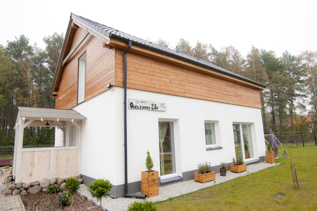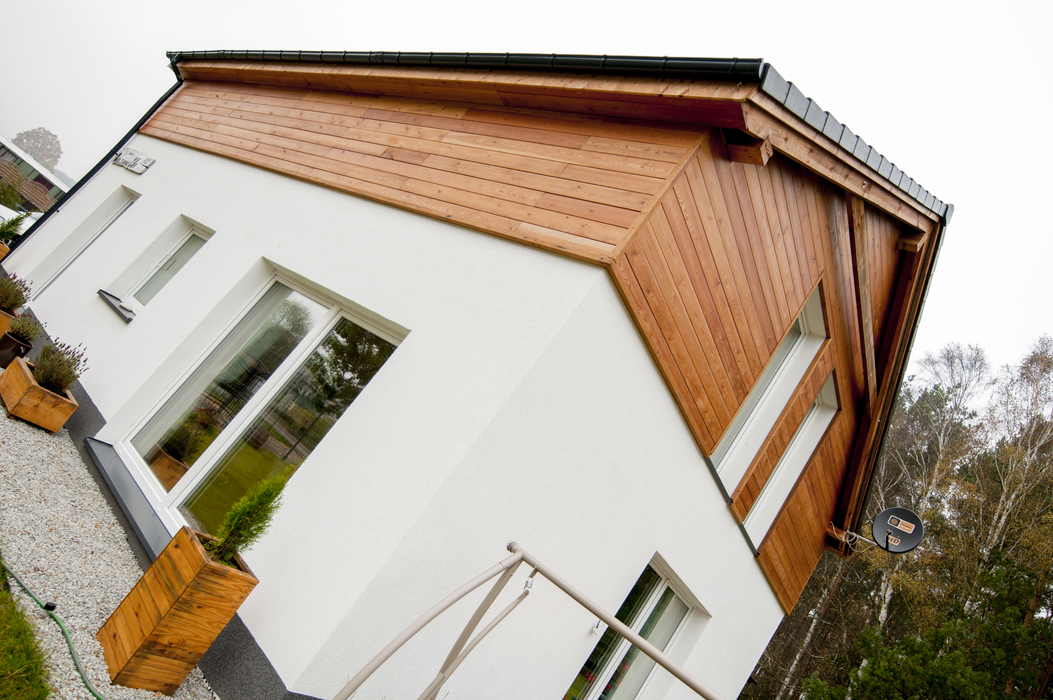 Tradycyjny dom z elewacją z podbitki świerkowej - Obelzanki