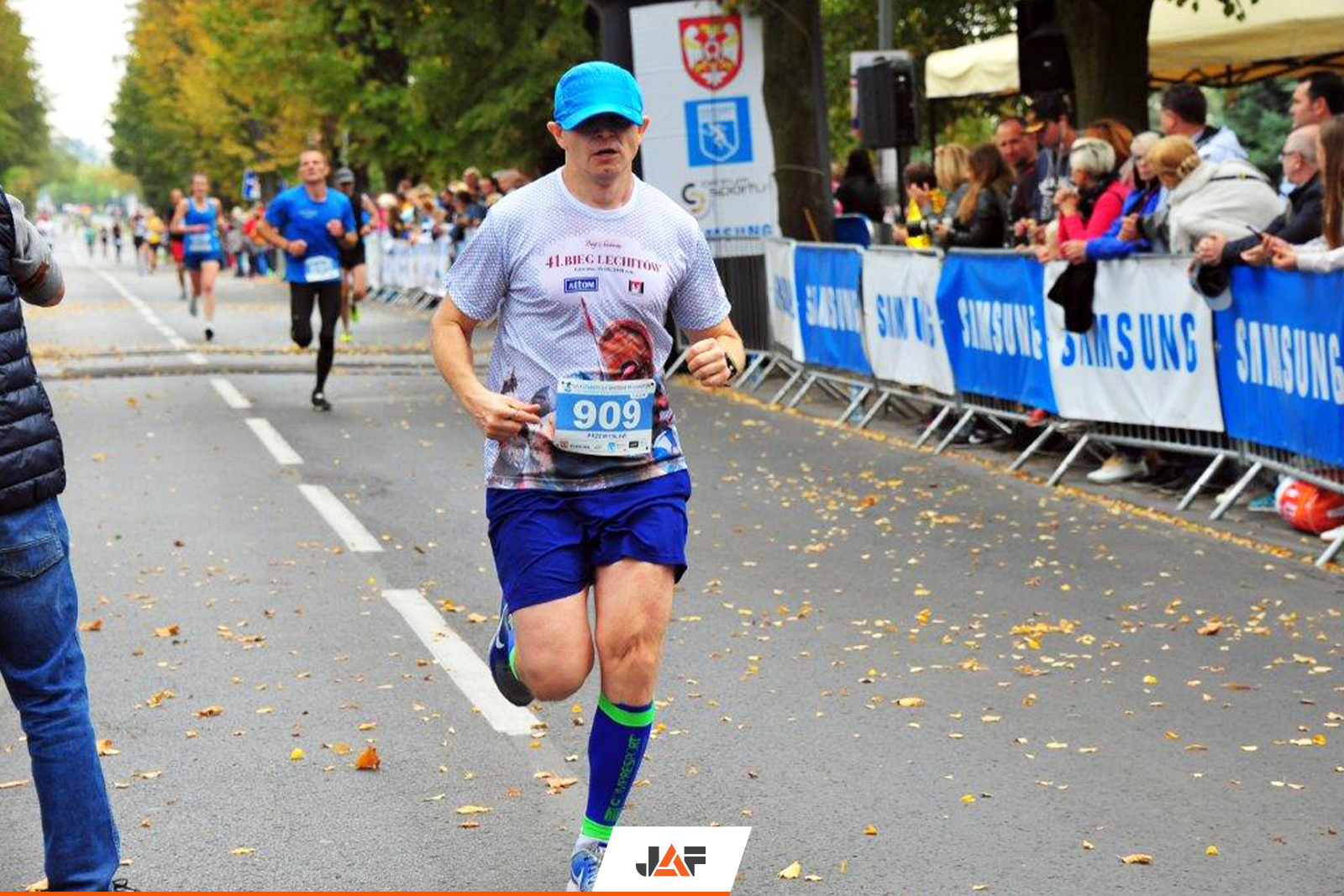 Na początku biegałem rekreacyjnie dla siebie. Chociaż to wtedy robiłem najwięcej kilometrów, nawet do 90 tygodniowo, nie interesowały mnie zawody. Stawiałem na jedno długie wybieganie i krótsze dystanse w pozostałe dni treningowe, ale po tych samych trasach. Nagrodą było uczucie po zakończonym biegu, które na szczęście towarzyszy mi do dziś. Na pierwszy Półmaraton Poznański wyciągnął mnie kolega ze studiów w 2013 roku. Nieco zaostrzyłem swoje podejście, trzymając reżim 5 treningów w tygodniu oraz coraz bardziej dokręcając śrubę. Zmieniła to kontuzja kolana w 2014 roku. Zmniejszyłem liczbę treningów do 4 i paradoksalnie zacząłem biegać… szybciej oraz dłużej.