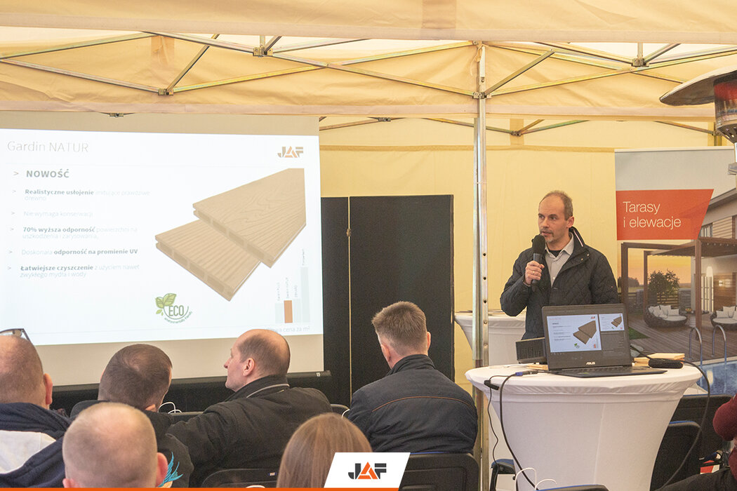 Wiosna zbliża się wielkimi krokami, a więc najwyższa pora pomyśleć o jej urokach w otoczeniu tarasów i elewacji z drewna. Dlatego 7 marca 2019 w najnowszej warszawskiej siedzibie w Małopolu, odbyło się szkolenie dotyczące kompleksowej gamy produktów JAF Polska oraz zaufanych firm partnerskich: Osmo, Dekard i Cembrit.