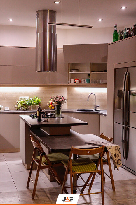Ta przytulna kuchnia, została wykonana przy użyciu melaminowanych płyt meblowych, ale dzięki zastosowaniu produktów z serii EGGER Feelwood można wyczuć w nich naturalną strukturę drewna, choć go tu nie ma.