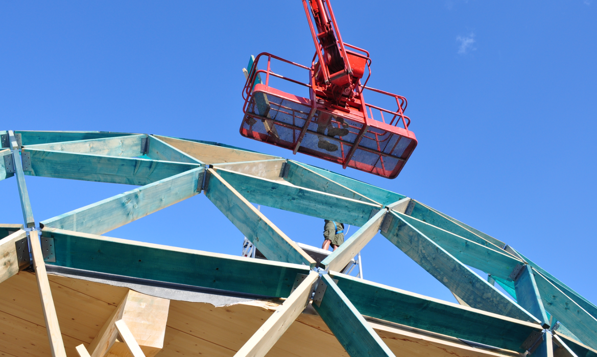 Użyte drewno budowlane KVH® świerkowe 45x250x13000 było cięte na odpowiednie wymiary i kąty.