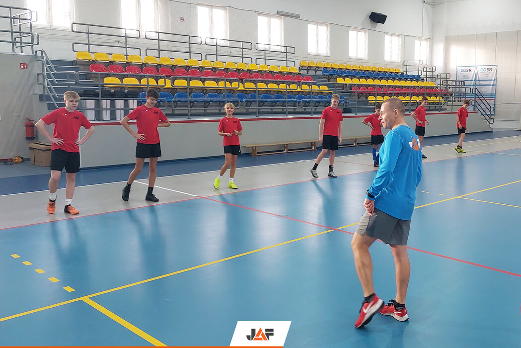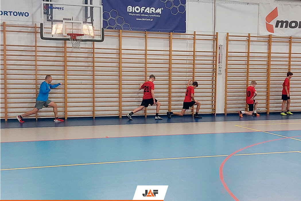 Po części teoretycznej, w której uczniowie dowiedzieli się nieco na temat m.in. budowy i właściwego doboru buta biegowego, metod przygotowania się do maratonu, sposobów pomiaru tętna oraz taktyki biegów długodystansowych… przyszedł czas na praktykę! Na hali GOSiR w Dopiewie Pan Przemysław poprowadził autorski trening biegowy. Nie zabrakło też anegdot związanych z biegami długodystansowymi. Jak mawia Przemysław „dobre wybieganie skraca liczbę problemów życiowych o połowę”, więc mamy nadzieję, że dla uczniów będzie to nie tylko kolejny trening, ale również nowy sposób patrzenia na życie.