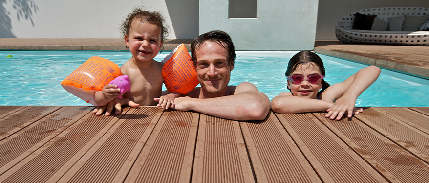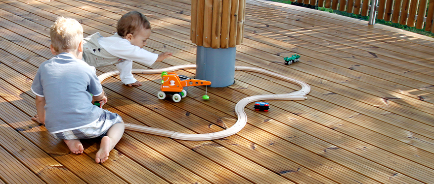 Małe dzieci mają mnóstwo energii. Biegają, skaczą, wszędzie ich pełno. Ledwo się obejrzysz, a one już są gdzie indziej. Dlatego na wagę złota jest wyeliminowanie przydomowych zagrożeń. Kosiarka, sekator, rozgrzany grill, ostre krawędzie mebli lub kujące rośliny (np. juka ogrodowa) powinny być zawsze zabezpieczone. To samo tyczy się tarasu. Płytki ceramiczne robią się wyjątkowo śliskie po deszczu, natomiast rozgrzane słońcem mogą parzyć. Wygodną w utrzymaniu alternatywą jest bezobsługowy taras kompozytowy.