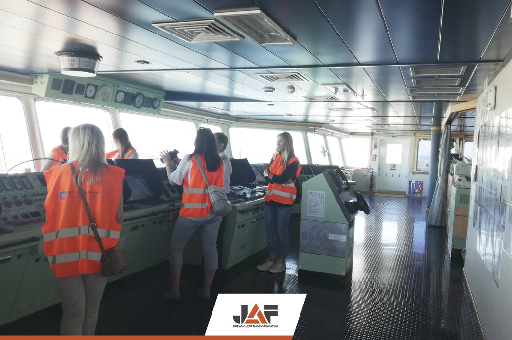 Podczas wizyty miałyśmy okazję obserwować rozładunek i załadunek prawie 400-metrowego kontenerowca OOCL United Kingdom, który odbywał się równocześnie przy pomocy 5 ogromnych dźwigów. Następnie odwiedziłyśmy pokład, maszynownię oraz mostek… i to w towarzystwie samego kapitana! Nie mogło zabraknąć pamiątkowych zdjęć, do których obejrzenia serdecznie zapraszamy :)