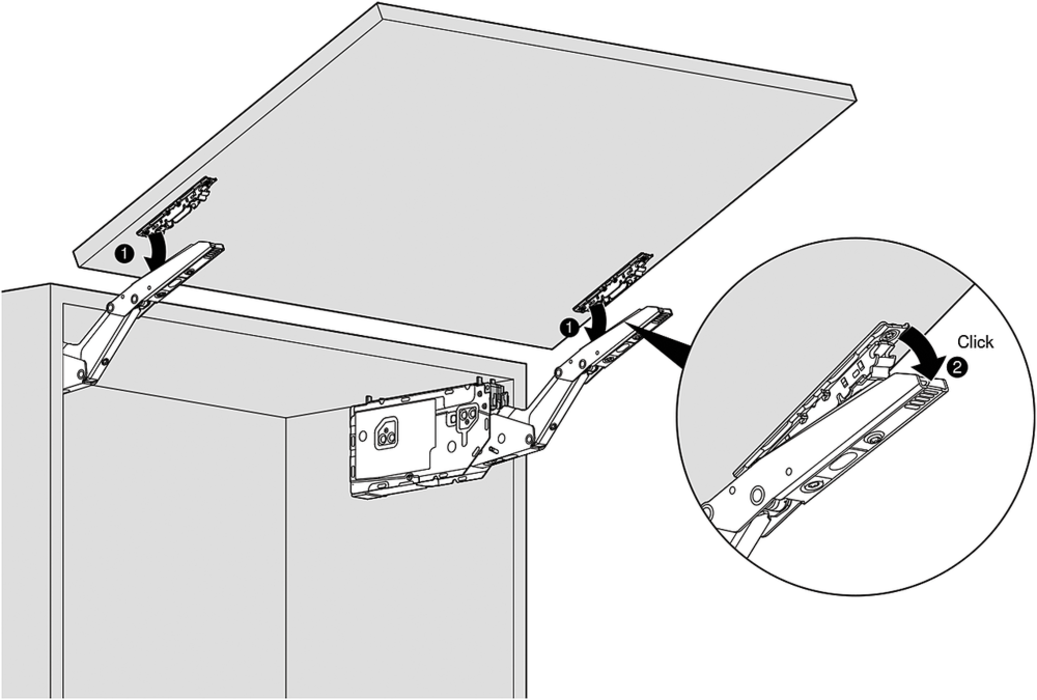 Zestaw siłowników 22K2900T w wersji Tip-On - MEBLE BEZ UCHWYTÓW, OTWIERANIE PRZEZ NACIŚNIĘCIE: