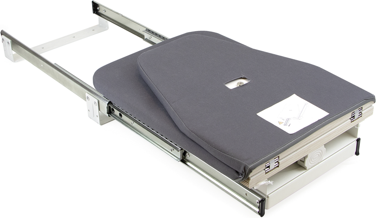 Jej instalacja jest niezwykle łatwa, bez potrzeby wiercenia, wystarczy przykręcić ją do powierzchni mebla. Po zainstalowaniu, deska wysuwa się płynnie i cicho dzięki prowadnicom kulkowym z systemem wspomagającym otwieranie oraz zamykanie. Dostarczana jest wraz ze zdejmowalnym pokrowcem, co ułatwia jej czyszczenie oraz konserwację.