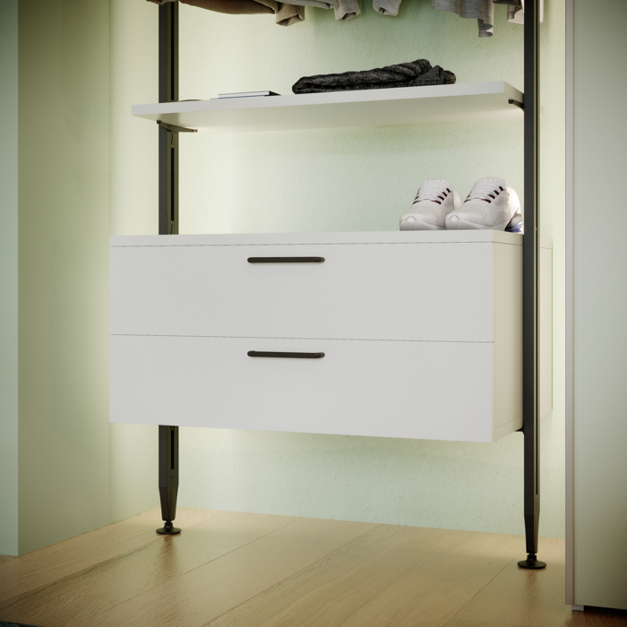 Profile i akcesoria Zero do tworzenia regałów modułowych. Profile są wykonane z aluminium, a akcesoria łączące i wsporniki ze znalu. Prostota i design pozwalają na szybkie dostosowanie systemu Zero do przestrzeni dowolnego typu: domostwo, garderoba, biuro czy sklep. Możesz łączyć różne elementy, aby stworzyć idealną kompozycję: drewniane lub szklane półki, moduły lub małe szafki i drążki na wieszaki.