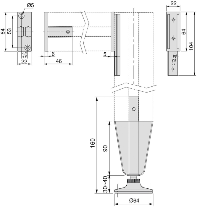 Zestaw okuć z niwelatorem kołowym do montażu profili zerowych (Podłoga - ściana), 7033549, Emuca