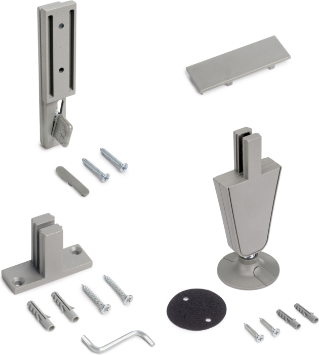 - Każdy zestaw akcesoriów zawiera 1 wspornik ścienny, 1 łącznik profili, 1 poziomicę, 1 osłonę profilu i wkręty montażowe.