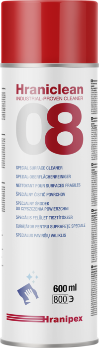 Specjalny środek czyszczący HRANICLEAN 08 jest przeznaczony do czyszczenia wrażliwych powierzchni, czyści meble w wysokim połysku i matowe, usuwa ślady tłuszczu, ołówków i markerów z płyt meblowych. Czyści resztki kleju z naklejek papierowych. Jest dobrym pomocnikiem nie tylko u producentów mebli, ale nawet w domu dzięki swojej wszechstronności i przyjemnemu zapachowi.