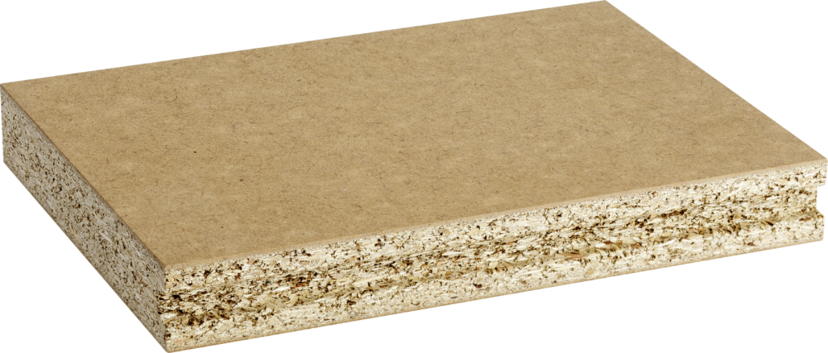 Płyta wiórowa laminowana z wierzchnimi warstwami cienkiego nasypu (podobnego jak przy MDF).