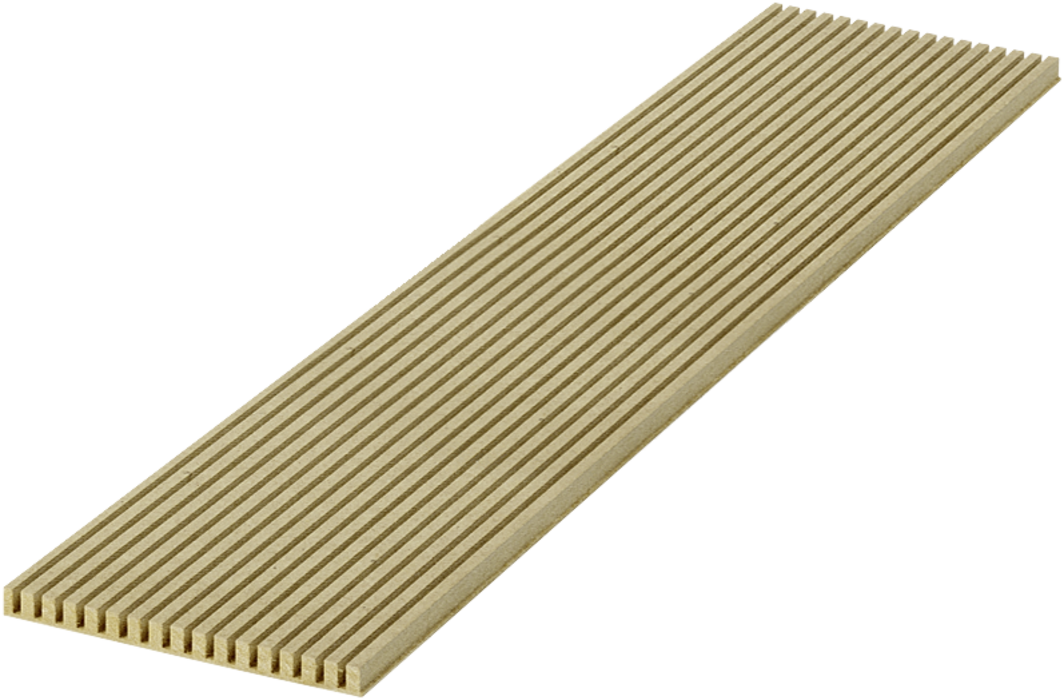 Płyta MDF z głębokim, ciągłym, podłużnym rowkiem po jednej stronie, umożliwiającym zginanie gładkiej strony, dzięki czemu uzyskuje się optymalną powierzchnię do lakierowania lub powlekania. Do zastosowań w suchym środowisku. Klasa użytkowa 1. Emisja formaldehydu: Klasa E1. (E-Z) : Niska emisja formolu<0,05 ppm (EN717-1), CARB2. Zastosowanie: szpitale, salony sprzedażowe, biura, wnętrza.