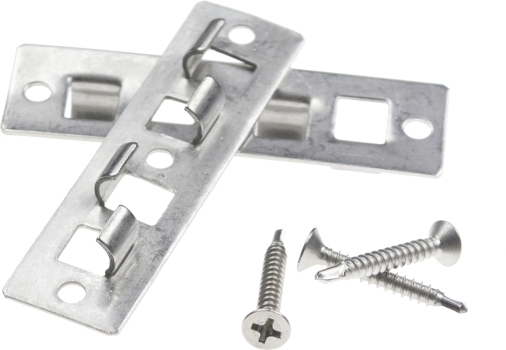 Klips ślizgowy wykonany ze stali nierdzewnej. Należy przykręcić go do łącznika PVC za pomocą wkrętów samowiercących.