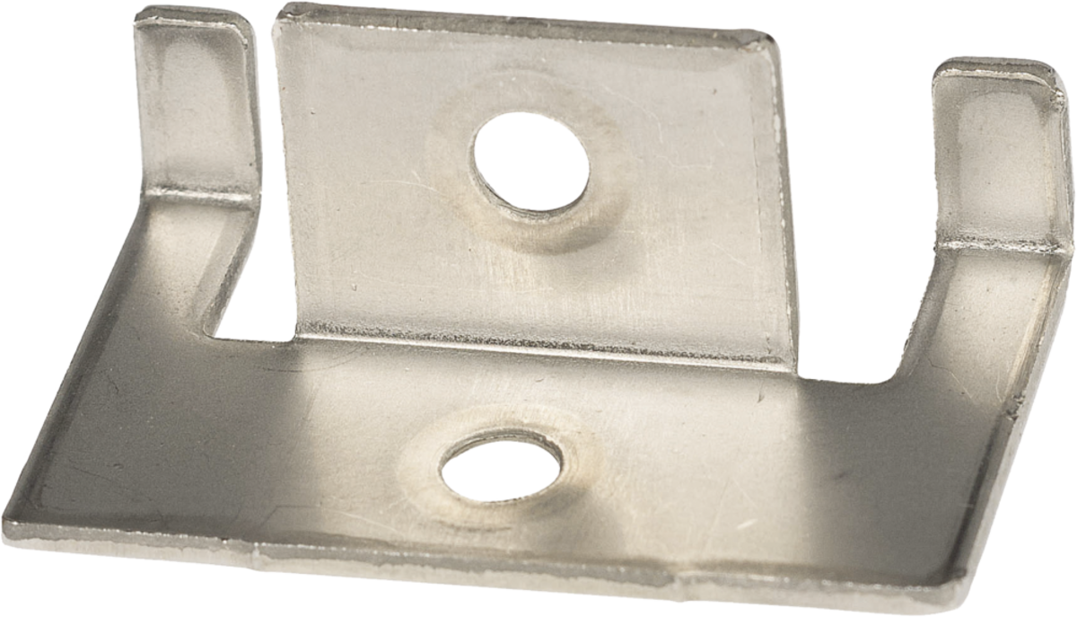 Klipsy startowe dedykowane do desek tarasowych Silvadec. Wykonane ze stali nierdzewnej. Gruba i mocna konstrukcja oraz głębokie frezowania na wkręty, pozwalają bardzo dobrze ułożyć się na desce co ułatwia i przyspiesza montaż.