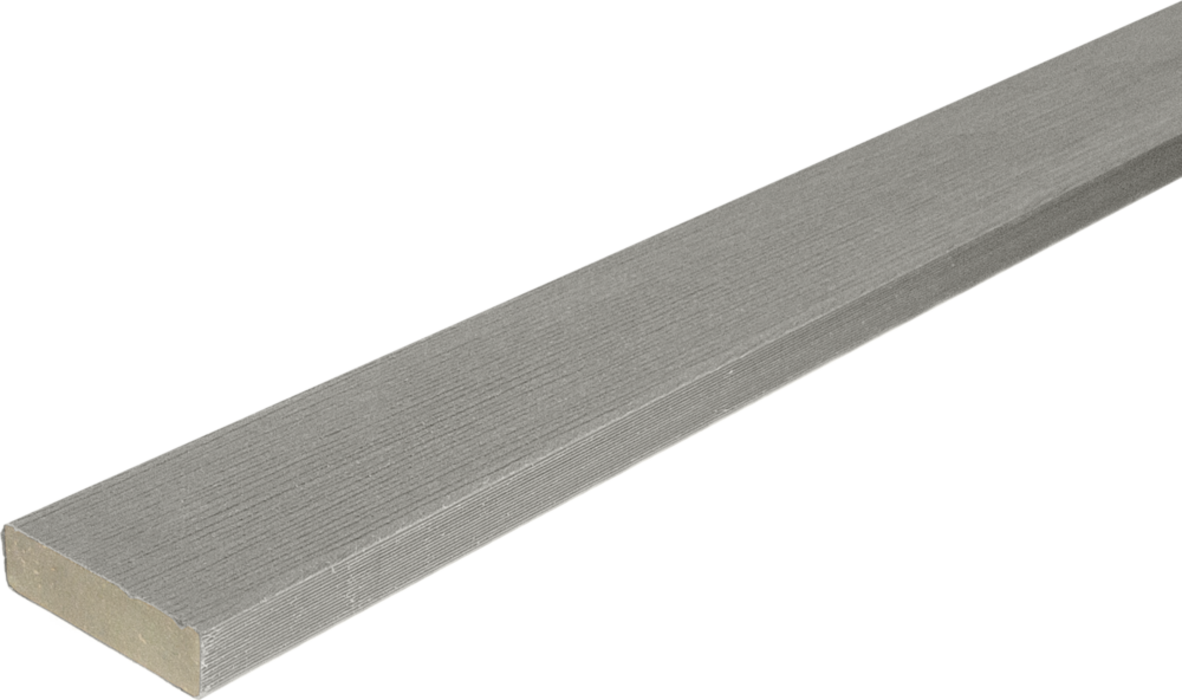 Listwa płaska dedykowana do tarasów Silvadec Atmosphere. Wykonana w tej samej technologii co deska - koekstrudowana budowa oznacza, że rdzeń listwy został otoczony mieszanką polimerów o najwyższych parametrach użytkowych. Jest gruba i mocna oraz cechuje się wysoką trwałością. Zawiera dodatki antyoksydnatów UV i jest odporna na destrukcję biologiczną. Dostępna w kolorach odpowiadających kolorom desek.