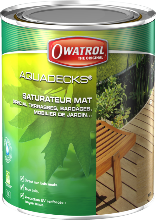 To penetrująca i wiążąca warstwa wykończeniowa do drewna. Zapewnia elastyczne, bogate i matowe wykończenie na wszystkich gatunkach drewna – w tym drewnie egzotycznym. Aquadecks nasącza, penetruje i stabilizuje drewno, minimalizując pękanie, kurczenie i inne szkody wyrządzane przez wilgoć i światło słoneczne. Zastosowanie - zarówno na tarasy, jak również na elewacje drewniane.