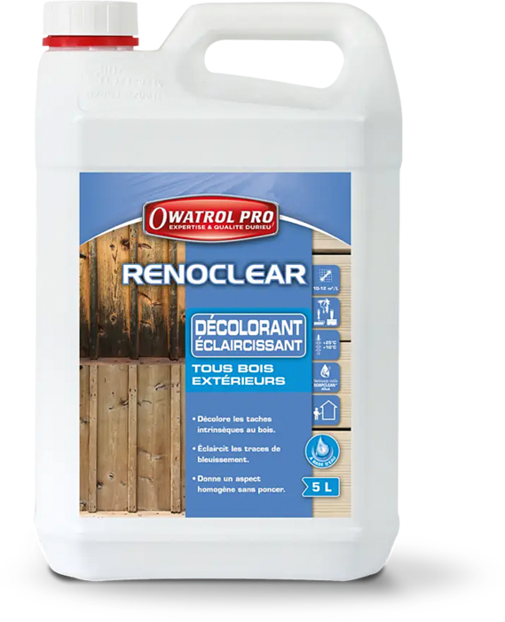 Renoclear to środek wybielający i rozjaśniający, który przywraca pierwotny kolor powierzchniom drewnianym.