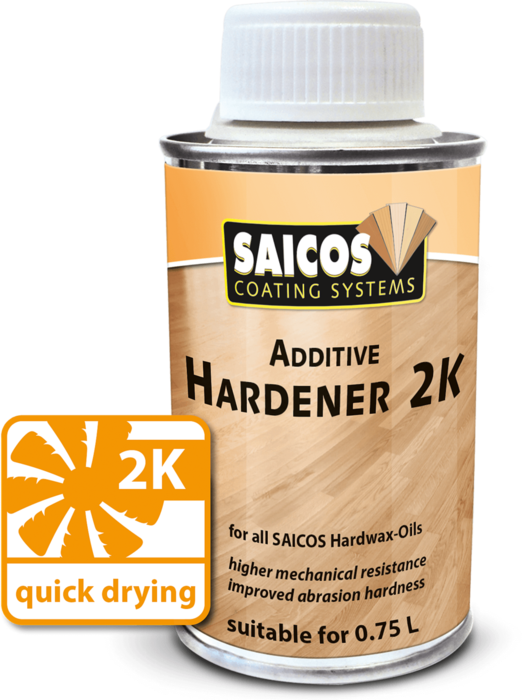 Dzięki dodatkowi utwardzacza 2K w SAICOS Premium Hardwax-Oil, Hardwax-Oil wysycha szybciej, szczególnie w trudnych warunkach, takich jak wysoka wilgotność. Ogólnie rzecz biorąc, obrobione powierzchnie mogą być obciążane wcześniej i są bardziej odporne na ścieranie.