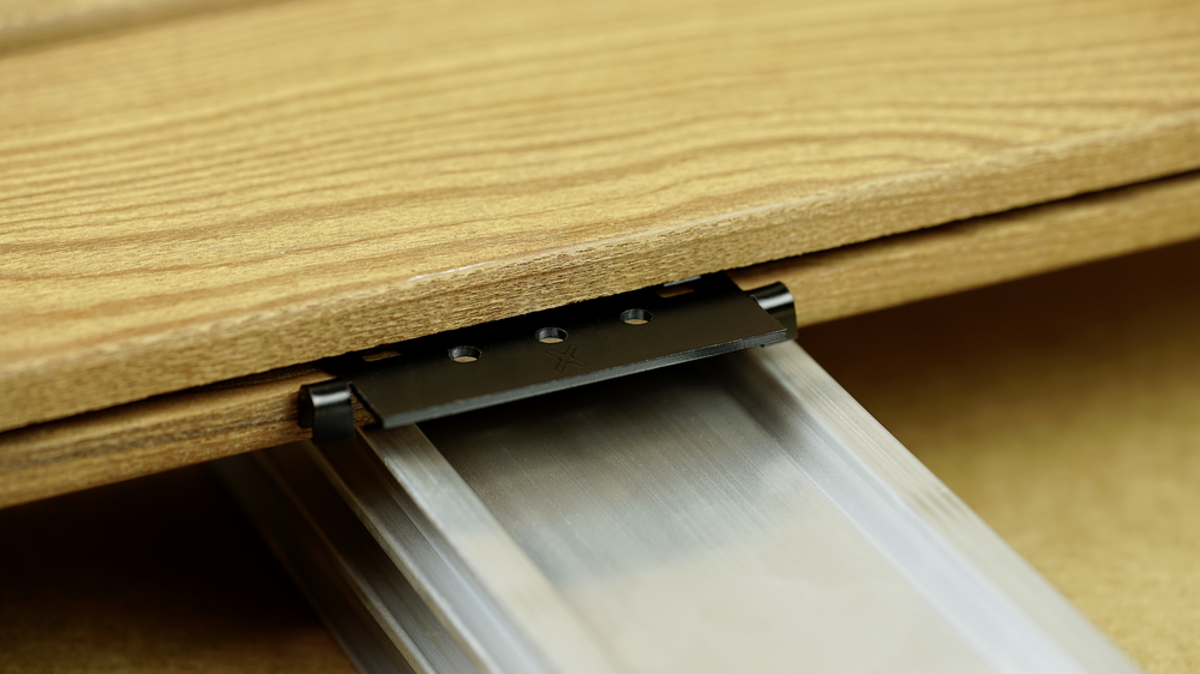 Plata P to system ukrytego montażu do deski tarasowej Termojesion wykonany ze stali nierdzewnej pokrytej czarną powłoką. Klipsy tarasowe PLATA gwarantują łatwy i szybki montaż specjalnie wyprofilowanych desek tarasowych.