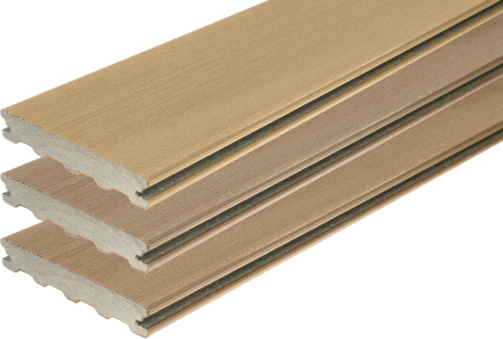 W przeciwieństwie do niektórych kompozytów — nie żółknie, zapewniając długotrwale ciepłą barwę, charakterystyczną dla drewna egzotycznego IPE. Deski na bazie żywicy HDPE są bardziej elastyczne i mniej kruche, lepiej znoszą niskie temperatury. Unikalną cechą tej kolekcji jest realistyczne cieniowanie, znakomicie prezentujące się na powierzchni tarasu.
